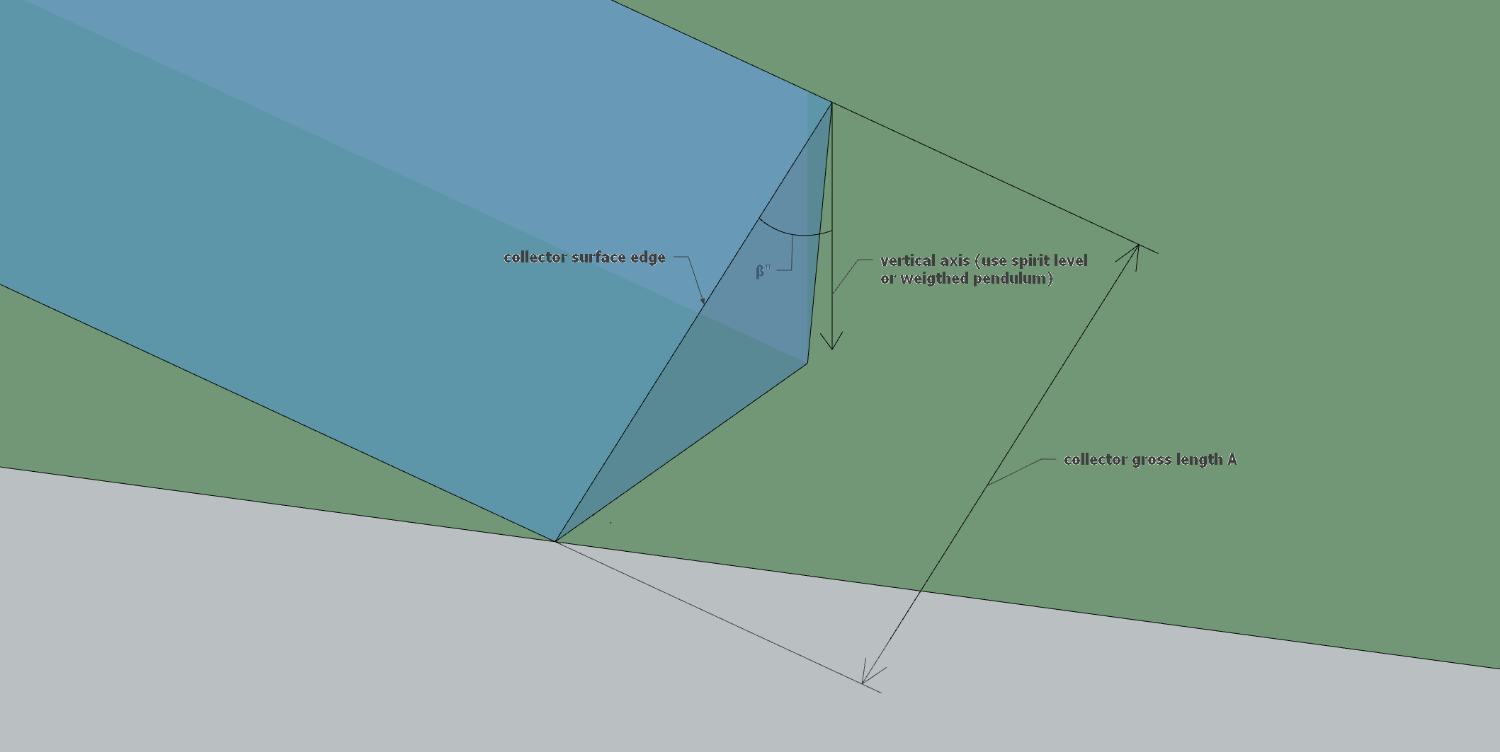 Figure 3: Collector tilt: \(\beta''\) is the absolute complementary tilt angle, i.e., the angle between collector surface edge and the plumb line (vertical axis).#